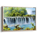 Step into the enchanting world of 'Misty Waterfall Serenade,' a mesmerizing landscape canvas art that transports beholders to a serene oasis of natural splendor. This exquisite piece beautifully captures the grandeur of a majestic waterfall plunging into a clear, azure river, creating a scene of tranquil beauty.