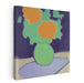 Introducing 'Modern Minimalist Flowers in Green Vase,' a captivating canvas art print that offers a contemporary take on the classic still life genre. This artwork showcases a modern interpretation of a traditional subject, featuring a striking green vase as the focal point, brimming with abstract representations of flowers in vibrant shades of orange, set against a deep navy blue backdrop.