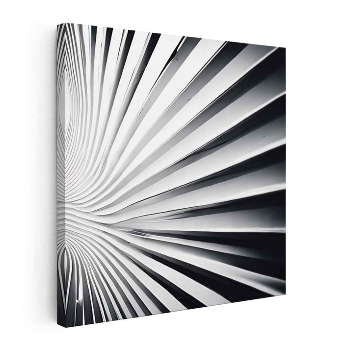 Introducing 'Monochrome Momentum,' a mesmerizing abstract canvas art that captures the essence of movement and depth through a minimalistic approach, inviting viewers into a world of infinite motion and visual intrigue. This captivating piece showcases a symphony of white lines spiraling towards a central vanishing point, creating a profound sense of dynamic energy and boundless depth.