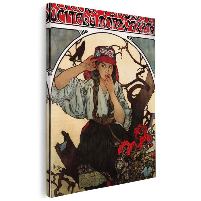 Step into the enchanting world of Alphonse Mucha's iconic poster, "Moravian Teachers' Choir (1911)." This masterpiece, now available as a stunning canvas print, captures the essence of Czech nationalism and the transformative power of music.
