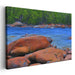 Introducing 'Mossy Haven: Vibrant Rocks and Lush Forest,' a mesmerizing landscape canvas art print that transports you to a tranquil oasis where nature's beauty thrives harmoniously. This captivating artwork captures the serene and tranquil beauty of a rocky riverbank set against a lush green forest, offering a delightful blend of stillness and motion.