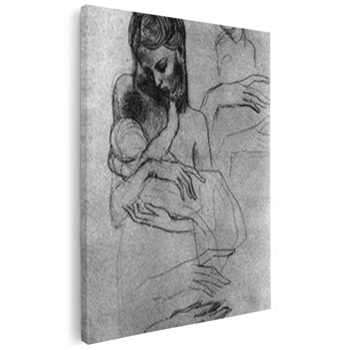 Immerse yourself in the emotional depth of Pablo Picasso's "Mother and Child (Study)," created in 1904. This captivating artwork, now meticulously reproduced on high-quality canvas, offers a glimpse into the artist's transformative "Blue Period," a time of profound introspection and expressive experimentation.