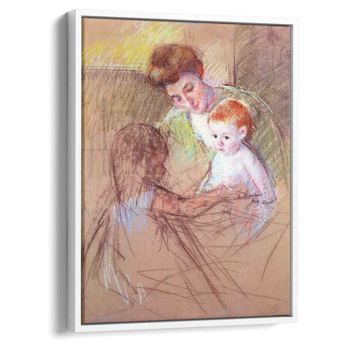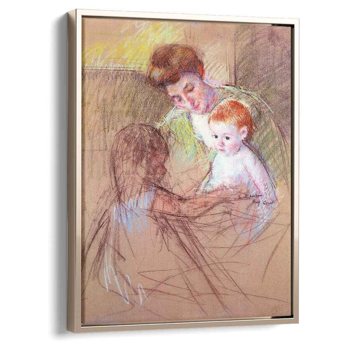 Immerse yourself in the warmth and intimacy of Mary Cassatt's "Mother and Daughter Looking at the Baby," a captivating portrayal of motherhood and the profound bond between a parent and child. This iconic painting, now meticulously reproduced on high-quality canvas, invites you to experience its timeless charm and emotional resonance.