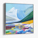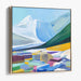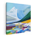Introducing 'Mountain Majesty with Geometric Foreground,' a captivating canvas art that masterfully blends the serene beauty of a snow-capped mountain with vibrant, abstract geometric shapes in the foreground. This artwork features a majestic white mountain peak against a sky transitioning from soft pale blue to a deep, rich hue, exuding a sense of tranquility and grandeur.