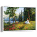 Introducing "Nature's Silent Muse," an enchanting landscape canvas art that transports viewers to a tranquil moment in nature where beauty and serenity harmonize effortlessly. This captivating artwork portrays a young woman in a flowing white gown, gracefully seated in a lush meadow adorned with vibrant pink wildflowers. Majestic trees stand tall, framing the scene with their dark green foliage, contrasting vividly against the gentle, dappled sunlight filtering through their branches.