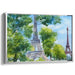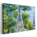 Introducing 'Parisian Watercolor Reverie,' a mesmerizing canvas art that transports you to the heart of Paris, capturing the iconic Eiffel Tower in a vibrant and romantic light. This exquisite artwork, rendered in delicate watercolor style, showcases the Eiffel Tower gracefully emerging through lush green trees under a vast, clear sky, inviting you into a dreamlike Parisian scene.