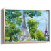 The artist's skillful use of a green and blue palette, with hints of soft brown for the Eiffel Tower, creates a harmonious contrast that is both captivating and calming. The gentle brush strokes and translucent watercolors infuse the painting with an airy quality, evoking a sense of romance and nostalgia that lingers in the viewer's mind.