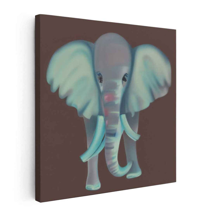 Introducing 'Pastel Pachyderm Dreams,' a captivating canvas art piece that transports viewers into a dreamlike realm where a gentle and curious elephant takes center stage. This whimsical artwork features the elephant rendered in soft pastel tones against a deep, rich brown backdrop, creating a striking contrast that enhances the piece's enchanting charm.