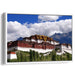 Introducing 'Prayer Walls Symmetry: A Tibetan Architectural Marvel,' a captivating canvas art piece that transports viewers to the enchanting realm of Lhasa, Tibet. This stunning artwork masterfully captures the grandeur and spiritual aura of the iconic Potala Palace, set against a backdrop of awe-inspiring mountains and a sky painted in vivid hues of blue, adorned with fluffy white clouds.