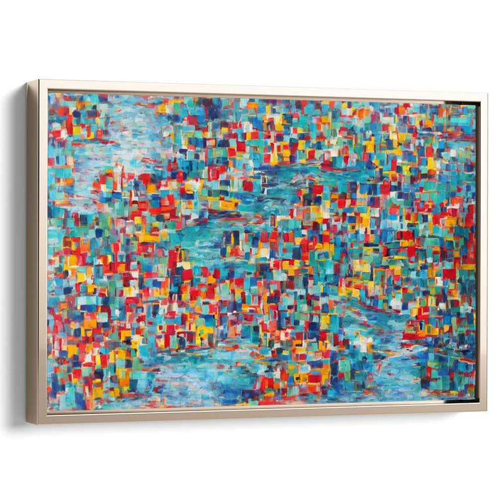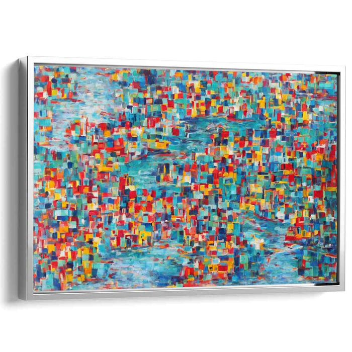 Introducing 'Pulsating Energy Field,' a captivating canvas art that is a visual symphony of vibrant colors and dynamic patterns, exuding a sense of movement and energy that mesmerizes the viewer. The artwork's composition is a mosaic of small, rectangular brushstrokes, forming a kaleidoscope of colors that dance across the canvas.