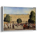 Introducing "Regal Tapestry of Yore," a captivating historical scene canvas art that transports viewers to a bustling and elegant setting outside a grand, historical building reminiscent of the famous Palace of Versailles. This exquisite artwork teems with life, featuring a diverse array of figures from elegantly dressed aristocrats to uniformed horsemen, all meticulously rendered in fine detail.