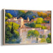 This piece evokes a mood of tranquility and serenity, making it a perfect addition to spaces like a living room or study. The balanced composition leads the eye through winding streets up to the distant hills, inviting viewers to immerse themselves in the peaceful charm of the Mediterranean village.