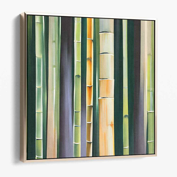 Introducing the mesmerizing canvas art print, 'Serene Bamboo Harmony,' a masterful portrayal of bamboo stalks that captivates with its intricate details and vibrant hues. This artwork elegantly showcases a series of tall and graceful bamboo stalks, meticulously depicted to emphasize texture and color.