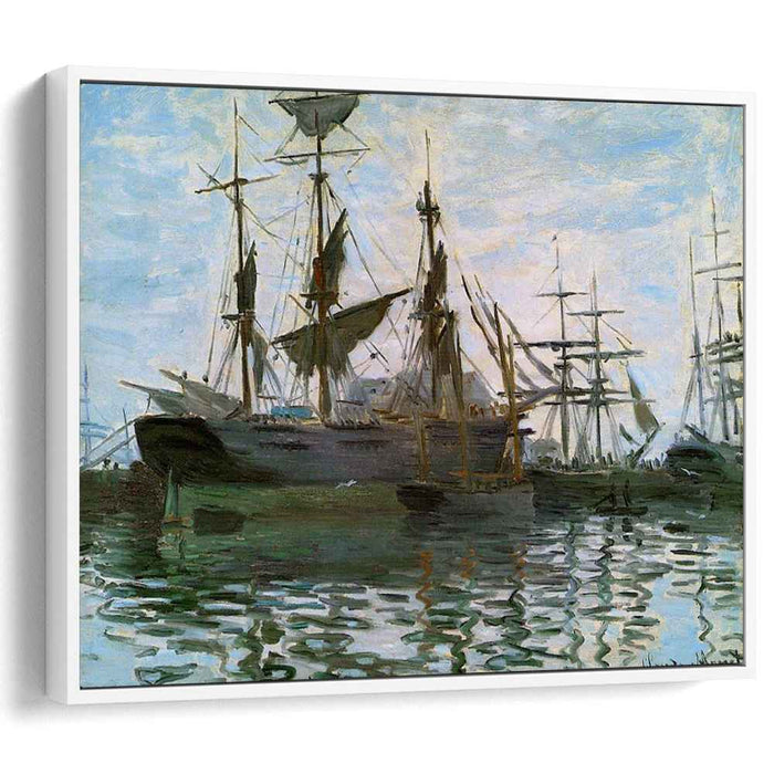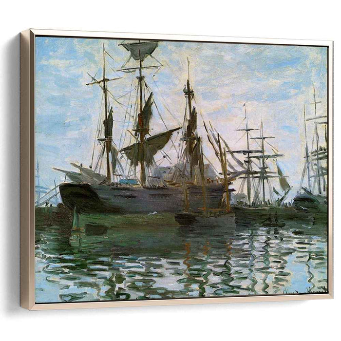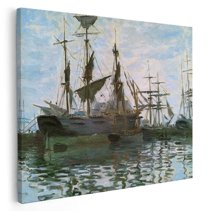 Immerse yourself in the serene beauty of Claude Monet's "Ships in Harbor," painted in 1873. This enchanting masterpiece, meticulously reproduced on high-quality canvas, brings the tranquil atmosphere of Le Havre harbor directly into your space.