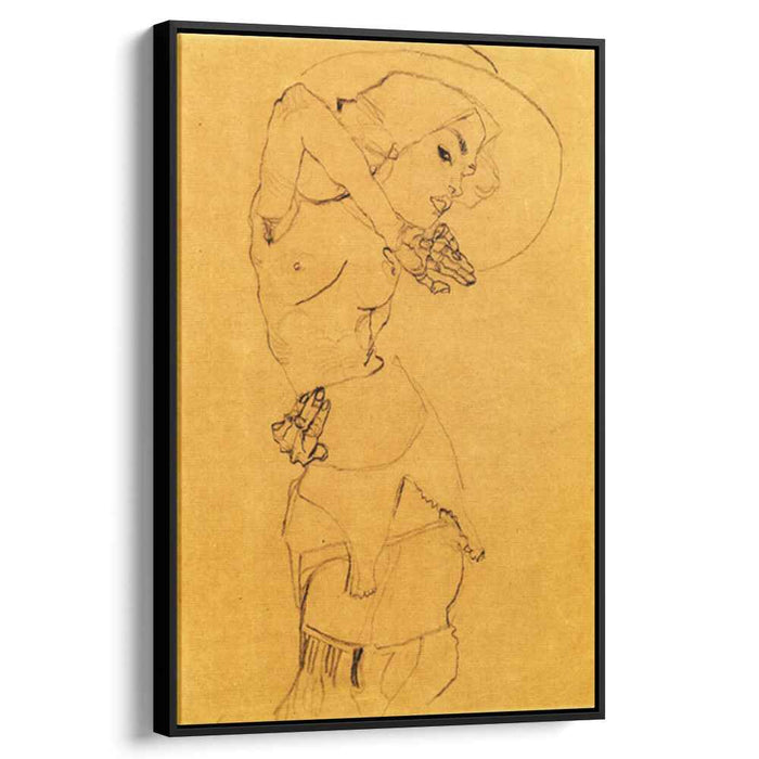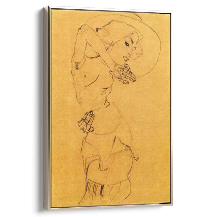 Elevate your space with Egon Schiele's 1910 masterpiece, "Standing Nude with Large Hat". This captivating canvas print brings an edgy sophistication, its bold lines and daring color palette commanding attention. Schiele's rebellious spirit echoes in every brushstroke, making this artwork a conversation starter. Perfect for the art aficionado or anyone seeking a striking aesthetic touch. Experience the allure of a timeless classic, reimagined for the modern home.
