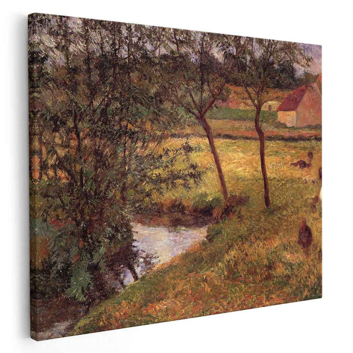 Immerse yourself in the enchanting world of Paul Gauguin's "Stream in Osny," painted in 1883. This idyllic landscape, now effortlessly reproduced on high-quality canvas, invites you to explore its hidden depths and unravel the artist's personal and artistic journey.