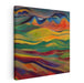 Step into the mesmerizing world of 'Sweeping Colors: Abstract Landscape Canvas Art,' a vibrant and dynamic masterpiece that beckons you into a realm of undulating hills and valleys bursting with a kaleidoscope of colors. This captivating artwork is a symphony of fiery reds, warm oranges, cool blues, and lush greens, harmoniously blending to create a visually striking and emotionally evocative experience.
