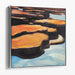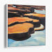 Introducing "Tangerine Dreamscape Symphony," an enchanting canvas art print that mesmerizes viewers with its abstract blend of naturalistic forms and vivid colors. This captivating artwork features expansive, undulating landforms painted in rich, warm tones of orange and amber harmoniously contrasted with cool, serene shades of blue and white. The interplay of these primary colors evokes a striking contrast symbolizing the dynamic relationship between land and water.