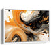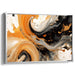 The artist's use of fluid, sweeping brushstrokes infuses the piece with a sense of constant motion, as if the colors themselves are alive. White and grey tones interweave with the dominant orange and black, offering a delicate balance and contrast that enriches the overall visual experience. Splatter techniques add spontaneity and texture, inviting viewers to explore the intricate details up close.