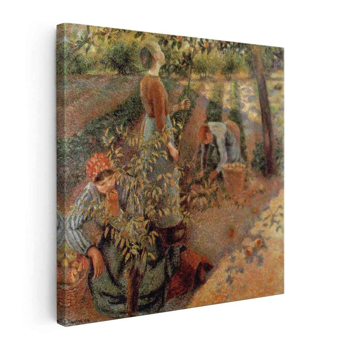 Step into the idyllic world of Camille Pissarro's "The Apple Pickers," a luminous masterpiece painted in 1886. This enchanting scene, now exquisitely reproduced on high-quality canvas, invites you to experience the vibrant beauty of the French countryside.