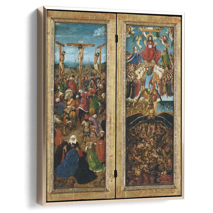 This museum-quality canvas print captures the brilliance of Van Eyck's original. The diptych becomes a focal point for spiritual reflection, inviting viewers to contemplate the themes of sacrifice, redemption, and the ultimate destiny of humankind.