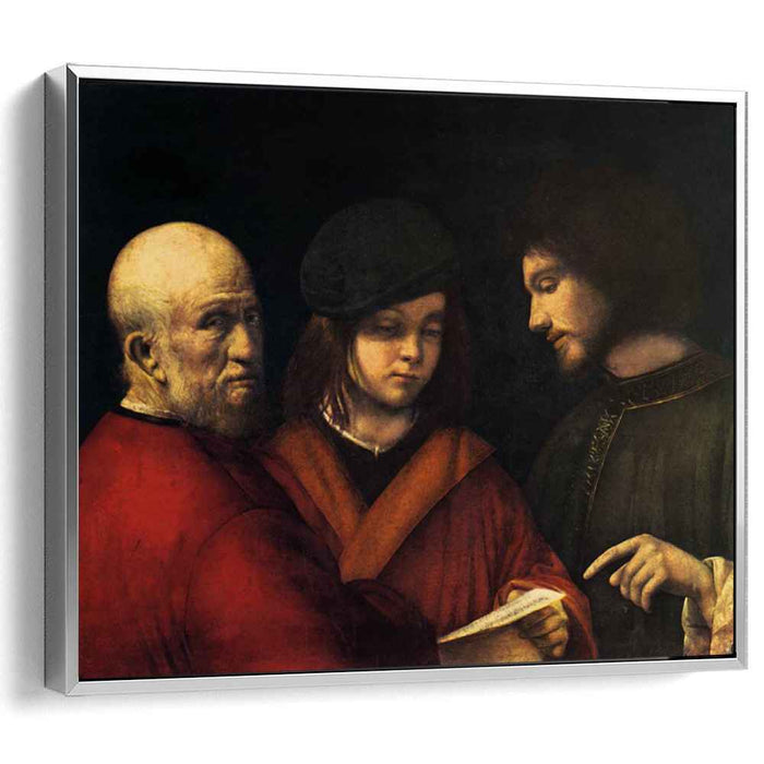 Unveiling the enigmatic beauty of Giorgione's timeless masterpiece, "The Three Ages of Man," now reproduced on high-quality canvas, invites you to embark on a contemplative journey through the stages of life.