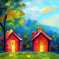 "Tranquil Abodes" is an ideal addition to spaces seeking warmth and coziness, such as living rooms, bedrooms, or studies. Its vibrant colors and textured composition bring a splash of color and a sense of peace to any room, transforming it into a sanctuary of tranquility.