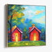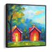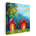 Introducing "Tranquil Abodes," a mesmerizing canvas art print that captures the essence of warmth and coziness through a colorful Post-Impressionist landscape. This artwork showcases two charming houses with red roofs, nestled in a vibrant setting that exudes tranquility and peace.