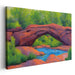 Immerse yourself in the tranquil beauty of nature with 'Tranquil Archway: Lush Landscape and Serene Waters Canvas Art'. This captivating piece portrays a natural stone arch in rich red-orange hues, set against a serene blue stream gently meandering beneath it. The verdant greenery enveloping the scene breathes life into the artwork, infusing it with freshness and vibrancy.