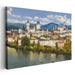 Introducing "Tranquil Riverfront," a mesmerizing canvas art that transports viewers to a historic European cityscape, brimming with life and intricate details. This exquisite artwork showcases a panoramic view of an ancient city, reminiscent of perhaps Salzburg, gracefully positioned along a shimmering river.