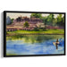 Introducing "Tranquil Waterside Palette: Riverside Serenity in Watercolor," a mesmerizing canvas art that transports viewers to a serene riverside setting, where a lone fisherman peacefully navigates the calm waters, framed by an ancient, majestic structure atop a lush, green hillside. This exquisite artwork captures a tranquil moment of reflection and historical grandeur.