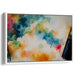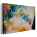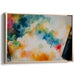 Introducing "Transient Serenity Horizon," an enchanting abstract watercolor dreamscape canvas art print that mesmerizes viewers with its vibrant hues and captivating abstract forms, creating a visual symphony that transcends reality into a realm of imagination and emotion. This stunning artwork is a harmonious fusion of primary colors, with rich blues and fiery oranges commanding attention amidst a backdrop of soft yellows, gentle pinks, and deep greens, establishing a serene yet invigorating equilibrium that soothes the soul and sparks creativity.