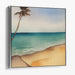 Introducing 'Tropic Breeze Symphony,' a mesmerizing tropical beach watercolor canvas art print that transports you to a serene oasis of calm and tranquility. This exquisite artwork captures the essence of a picturesque shoreline adorned with graceful palm trees swaying gently towards the turquoise waters of the ocean.