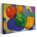 Introducing 'Tropical Fruit Symphony in Color: Vibrant Still Life with Fruits,' a mesmerizing canvas art print that exudes a feast of colors and shapes, celebrating the beauty of nature's bounty in a vivid and dynamic composition. This artwork showcases a delightful array of fruits such as apples, a pear, and oranges, set against a backdrop of abstract, vibrant hues that add a modern and lively twist to the traditional still life genre.