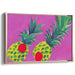 The artwork's use of flat, bold colors and simplified shapes evokes a sense of graphic artistry, reminiscent of the iconic Pop Art movement. Clean, sharp lines define the textured skin and spiky leaves of the pineapples, creating a dynamic contrast against the smooth, saturated pink background, adding depth and visual interest to the piece.