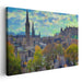 Introducing 'Twilight Gothic Architecture: Gothic Spires and Autumn Hues,' a mesmerizing canvas art print that transports you to a historic European city reminiscent of the grandeur of Edinburgh. This artwork offers a panoramic view of a city skyline adorned with towering spires and majestic gothic architecture, exuding a timeless and awe-inspiring aura.