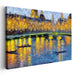 Introducing 'Twilight Jazzscape,' an enchanting canvas art print that transports you to a mesmerizing night scene of a bustling cityscape, reminiscent of Paris, with its iconic bridges and architectural landmarks aglow under the evening sky. This captivating artwork captures the essence of a vibrant city at night, where city lights reflect and shimmer on the water's surface, painted in a radiant palette of yellows, golds, and oranges, harmoniously contrasting with the cool blues and purples of the night sky and water.