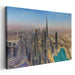 Introducing 'Urban Mirage Brushstrokes,' an awe-inspiring landscape canvas art that transports viewers into a visionary cityscape reminiscent of Dubai's iconic skyline. This panoramic artwork captures a futuristic urban environment dominated by a soaring skyscraper surrounded by a diverse array of architecturally striking buildings.