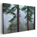 Step into the enchanting world of "Veiled Woods Essence: Misty Forest Landscape Canvas Art Print," where a mist-laden forest beckons with its ethereal beauty and tranquil allure. This captivating artwork captures the essence of a serene forest scene dominated by two majestic pine trees, their verdant branches swaying gently amidst a soft, enveloping fog.