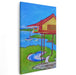 Introducing "Vibrant Dwelling Elevations," a captivating modern Fauvist canvas art print that transports viewers to a tranquil lakeside setting, featuring a charming stilt house painted in warm hues of yellow and red. This vivid artwork captures the serene ambiance of a lakeside retreat, where a striking stilt house stands tall against the cool blue tones of the sky and water.