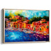 'Vibrant Seaside Escape' radiates joy and wanderlust, making it a perfect addition to any space, especially a living room or dining area where its lively composition and vivid colors can be fully appreciated. Ideal for travel enthusiasts and admirers of coastal beauty, this piece invites a sense of adventure and appreciation for the charm of seaside towns.