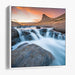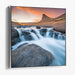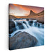 Introducing "Waterfall Illusion," a captivating landscape canvas art print that transports viewers to a tranquil oasis where a majestic waterfall cascades against a backdrop of towering mountains, all bathed in the warm, ethereal glow of a setting sun. This breathtaking artwork captures the essence of nature's timeless beauty and grandeur.