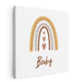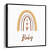 The intricately detailed outermost arch, embellished with a playful squiggly line, adds a dynamic element to the piece, infusing it with texture and movement. Nestled within the inner arches are three heart shapes, enhancing the artwork's theme of sweetness and love. Below the rainbow, the word 'Baby' is elegantly scripted in a flowing, cursive font, further accentuating the artwork's gentle and nurturing aura.