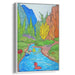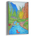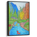 Introducing 'Whimsical Waters,' a captivating canvas art print that transports viewers into a playful and serene landscape brimming with joy and whimsy. This vivid illustration is a delightful portrayal of a meandering stream, adorned with charming cartoonish aquatic creatures that infuse the scene with a sense of lighthearted playfulness.