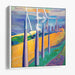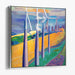 Introducing 'Whirling Gizmos on Canvas,' a vibrant canvas art print that boldly captures the dynamic essence of wind turbines set against a colorful landscape. This modern piece exudes movement and energy, symbolizing the harmony between renewable energy and nature.