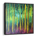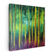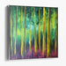 Step into the mesmerizing world of 'Whispering Woods Adventure: A Vivid Journey Through Nature,' a spellbinding canvas art print that transports you to a lush and vibrant forest realm. This artwork showcases a majestic forest expanse where towering trees with elongated trunks reach towards the sky, vanishing into a canopy of emerald and lime green foliage that dances with life.