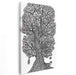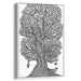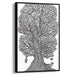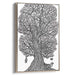 The primary color palette of deep black against a stark white background accentuates the fine details of the tree, allowing viewers to immerse themselves in the intricate patterns and textures without the distraction of color. At the tree's base, a small bird perches, adding a touch of life and narrative to the piece, enhancing its visual storytelling.