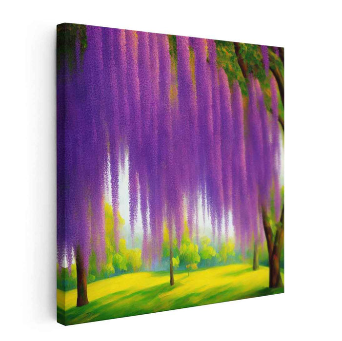 Introducing "Whispers of Purple Rain: Cascading Wisteria," a mesmerizing canvas art print that transports viewers to a sunlit garden enveloped in the cascading beauty of violet-purple wisteria blossoms. This enchanting artwork captures the essence of tranquility and natural elegance, inviting you to immerse yourself in a serene oasis of floral bliss.