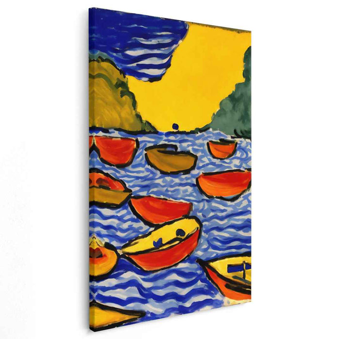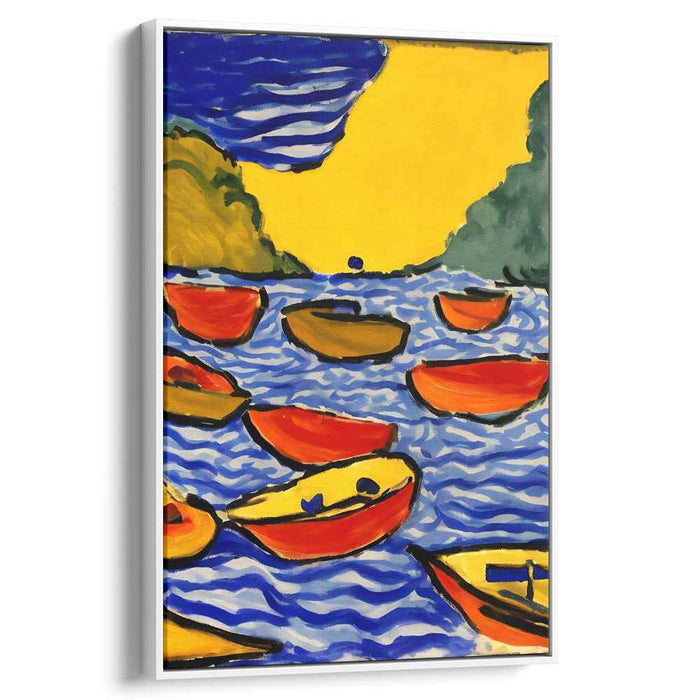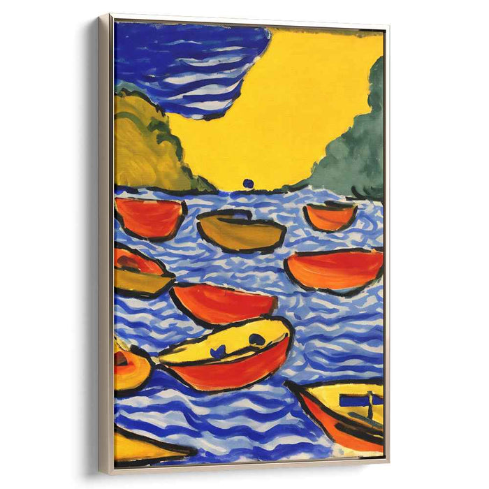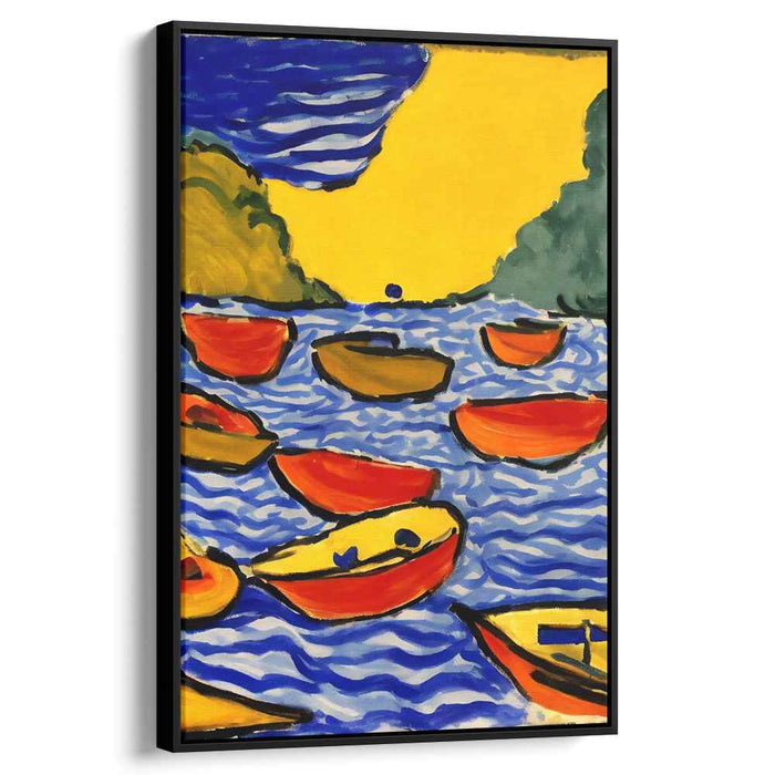 This piece falls under the Fauvism art movement, resonating with the expressive techniques and high contrast color palette characteristic of the style. With its subject of boats on water, 'Wild Seascape Illusions' effortlessly transforms any space into a tranquil oasis, inviting the beauty of nature indoors.