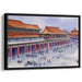 Step into a scene of grandeur and liveliness with "Winter Majesty," a captivating canvas art piece that immerses viewers in the bustling ambiance of an ancient imperial palace blanketed in serene snowfall. This artwork skillfully captures the essence of a winter scene, where every detail comes alive amidst the tranquil snowy setting.